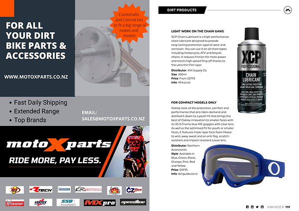 Distributor : Northern Accessories Style : Available in Blue , Green , Black , Orange , Pink , Red and Yellow Price : $ 49.95 Info : dirtguide . co . nz