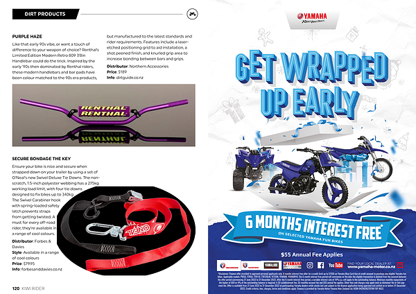 * Disclaimer : Finance offer provided to approved personal applicants only . 6 months interest free offer for a credit limit up to $ 7500 on Yamaha Blue Card line of credit account to purchase any eligible Yamaha fun bikes . Applicable models : PW50 , TTR50 , TTR110 , TTR125LW , YFZ50R , YFM90R , YFM90RYX . The 6 month interest free period will commence on the date the eligible transaction is debited from the account between the offer period commencing 21 June 2022 to 31 December 2022 . After the 6 month interest free period , a variable interest rate of 19 % p . a . will apply to the outstanding balance . Minimum monthly repayments of the higher of $ 60 or 4 % of the outstanding balance is required . A $ 0 establishment fee , $ 0 monthly account fee and $ 55 annual fee applies . Other fees and charges may apply such as dishonour fee or late payment fee . Offer is available from 21 June 2022 to 31 December 2022 at participating Yamaha dealers while stocks last and subject to the finance application being approved and settled on or before 31 December 2022 . Credit criteria , fees , charges , terms and conditions apply . Finance is provided by Yamaha Motor Finance New Zealand Ltd . NZBN 9429036270798 FSP 9622 .