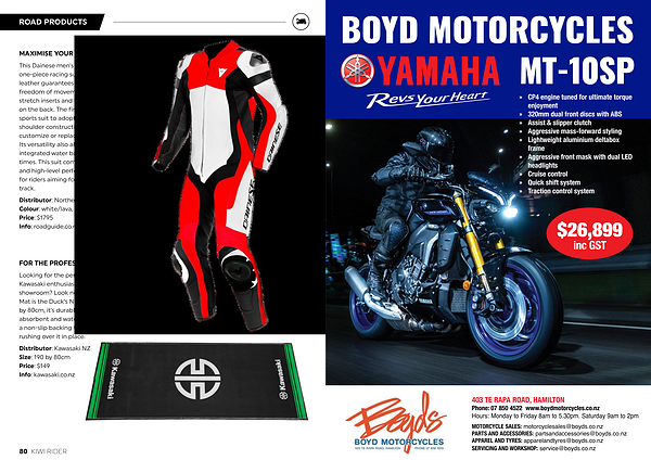 Phone : 07 850 4522 www . boydmotorcycles . co . nz Hours : Monday to Friday 8am to 5.30pm . Saturday 9am to 2pm