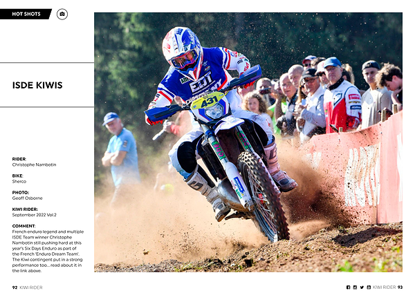 COMMENT : French enduro legend and multiple ISDE Team winner Christophe Nambotin still pushing hard at this year ’ s Six Days Enduro as part of the French ‘ Enduro Dream Team ’. The Kiwi contingent put in a strong performance too ... read about it in the link above .