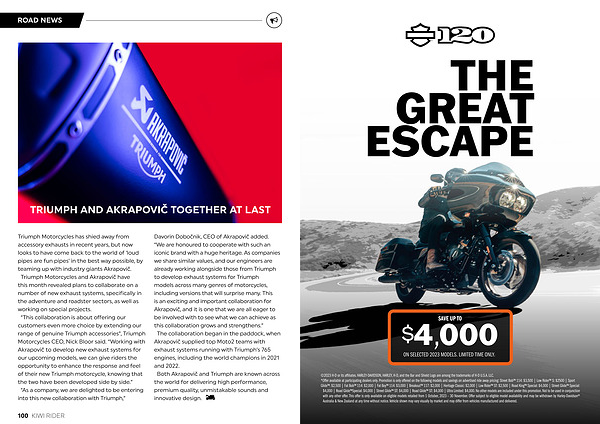© 2023 H-D or its affiliates . HARLEY-DAVIDSON , HARLEY , H-D , and the Bar and Shield Logo are among the trademarks of H-D U . S . A . LLC . * Offer available at participating dealers only . Promotion is only offered on the following models and savings on advertised ride away pricing : Street Bob™ 114 : $ 3,500 | Low Rider™ S : $ 2500 | Sport Glide™ : $ 2,500 | Fat Bob™ 114 : $ 2,000 | Fat Boy™ 114 : $ 3,000 | Breakout™ 117 : $ 2,000 | Heritage Classic : $ 2,000 | Low Rider™ ST : $ 2,500 | Road King™ Special : $ 4,000 | Street Glide™ Special : $ 4,000 | Road Glide™Special : $ 4,000 | Street Glide™ ST : $ 4,000 | Road Glide™ ST : $ 4,000 | Ultra Limited : $ 4,000 . No other models are included under this promotion . Not to be used in conjunction with any other offer . This offer is only available on eligible models retailed from 1 October , 2023 – 30 November . Offer subject to eligible model availability and may be withdrawn by Harley-Davidson ® Australia & New Zealand at any time without notice . Vehicle shown may vary visually by market and may differ from vehicles manufactured and delivered .