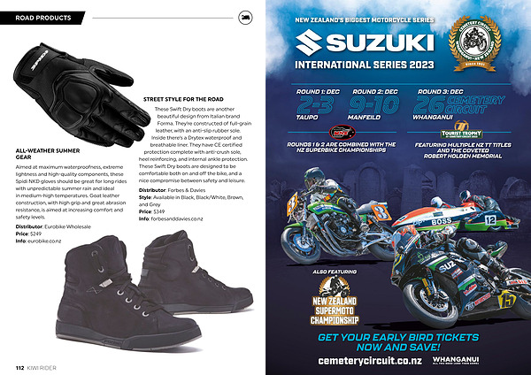 These Swift Dry boots are another beautiful design from Italian brand Forma . They ’ re constructed of full-grain leather , with an anti-slip rubber sole . Inside there ’ s a Drytex waterproof and breathable liner . They have CE certified protection complete with anti-crush sole , heel reinforcing , and internal ankle protection . These Swift Dry boots are designed to be comfortable both on and off the bike , and a nice compromise between safety and leisure .