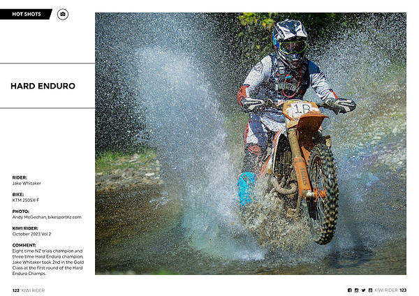 COMMENT : Eight time NZ trials champion and three time Hard Enduro champion , Jake Whitaker took 2nd in the Gold Class at the first round of the Hard Enduro Champs .