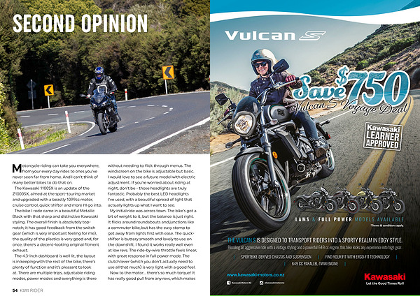 Motorcycle riding can take you everywhere, from your every day rides to ones you’ ve never seen far from home. And I can’ t think of many better bikes to do that on. The Kawasaki 1100SX is an update of the Z1000SX, aimed at the sport-touring market and upgraded with a beastly 1099cc motor, cruise control, quick-shifter and more I’ ll go into. The bike I rode came in a beautiful Metallic Black with that sharp and distinctive Kawasaki styling. The overall finish is absolutely topnotch; it has good feedback from the switch gear( which is very important feeling for me), the quality of the plastics is very good and, for once, there’ s a decent-looking original fitment exhaust. The 4.3-inch dashboard is well lit, the layout is in keeping with the rest of the bike, there’ s plenty of function and it’ s pleasant to look at. There are multiple trips, adjustable riding modes, power modes and everything is there without needing to flick through menus. The windscreen on the bike is adjustable but basic. I would love to see a future model with electric adjustment. If you’ re worried about riding at night, don’ t be- those headlights are truly fantastic. Probably the best LED headlights I’ ve used, with a beautiful spread of light that actually lights up what I want to see. My initial ride was across town. The bike’ s got a bit of weight to it, but the balance is just right. It flicks around roundabouts and junctions like a commuter bike, but has the easy stomp to get away from lights first with ease. The quickshifter is buttery smooth and lovely to use on the downshift. I found it works really well even at low revs. The ride-by-wire throttle feels linear, with great response in full power mode. The clutch lever( which you don’ t actually need to use all that much) is very light with a good feel. Now to the motor … there’ s so much torque! It has really good pull from any revs, which makes