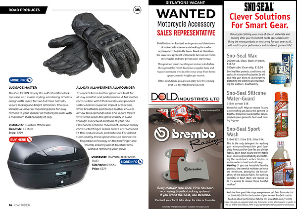 Distributor: Triumph Motorcycles( NZ) Size / style: S-XXXL Price: $ 279