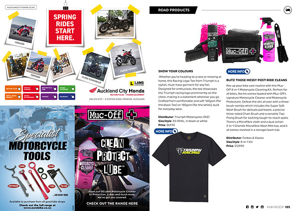 Distributor: Triumph Motorcycles( NZ) Size / style: XS-XXXL, in black or white Price: $ 69.90