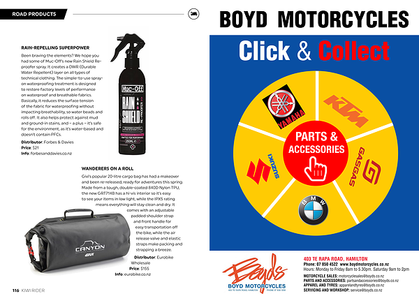 Phone : 07 850 4522 www . boydmotorcycles . co . nz Hours : Monday to Friday 8am to 5.30pm . Saturday 9am to 2pm