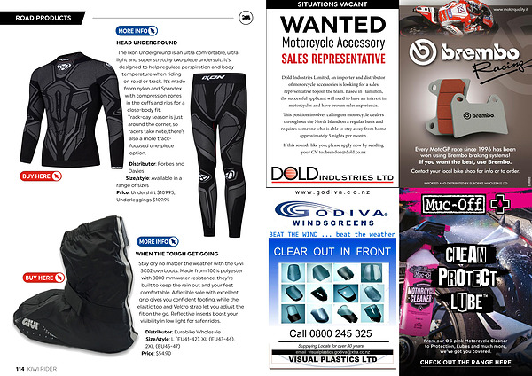 The Ixon Underground is an ultra comfortable, ultra light and super stretchy two-piece undersuit. It’ s designed to help regulate perspiration and body temperature when riding on road or track. It’ s made from nylon and Spandex with compression zones in the cuffs and ribs for a close-body fit. Track-day season is just around the corner, so racers take note, there’ s also a more trackfocused one-piece option.