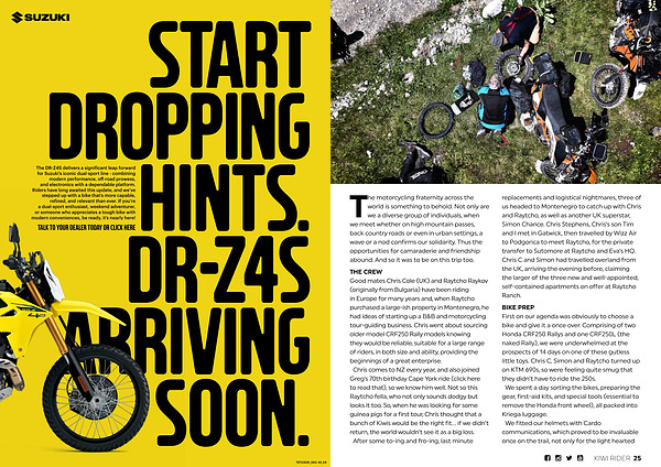 THE CREW Good mates Chris Cole( UK) and Raytcho Raykov( originally from Bulgaria) have been riding in Europe for many years and, when Raytcho purchased a large-ish property in Montenegro, he had ideas of starting up a B & B and motorcycling tour-guiding business. Chris went about sourcing older model CRF250 Rally models knowing they would be reliable, suitable for a large range of riders, in both size and ability, providing the beginnings of a great enterprise. Chris comes to NZ every year, and also joined Greg’ s 70th birthday Cape York ride( click here to read that), so we know him well. Not so this Raytcho fella, who not only sounds dodgy but looks it too. So, when he was looking for some guinea pigs for a first tour, Chris thought that a bunch of Kiwis would be the right fit … if we didn’ t return, the world wouldn’ t see it as a big loss. After some to-ing and fro-ing, last minute
