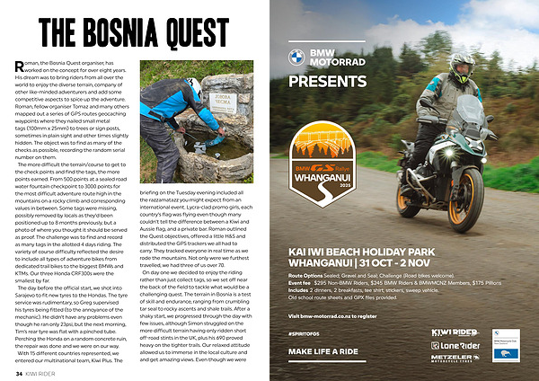 Route Options Sealed; Gravel and Seal; Challenge( Road bikes welcome). Event fee $ 295 Non-BMW Riders, $ 245 BMW Riders & BMWMCNZ Members, $ 175 Pillions Includes 2 dinners, 2 breakfasts, tee shirt, stickers, sweep vehicle. Old school route sheets and GPX files provided.