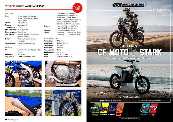 450cc, liquid-cooled, fourstroke, DOHC 4V, dry( wet) sump, single Not quoted Not quoted